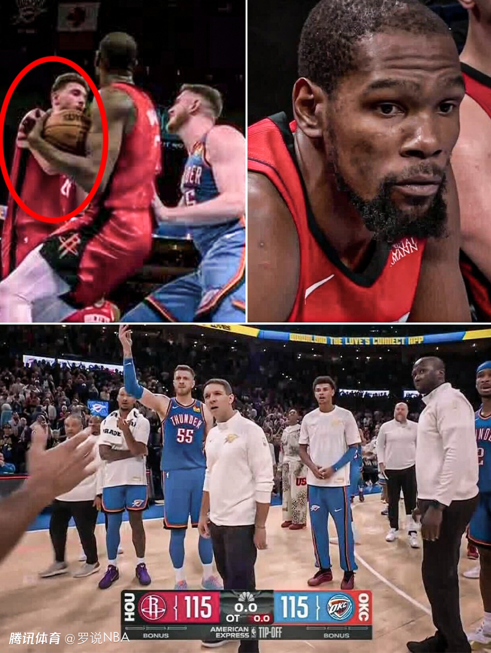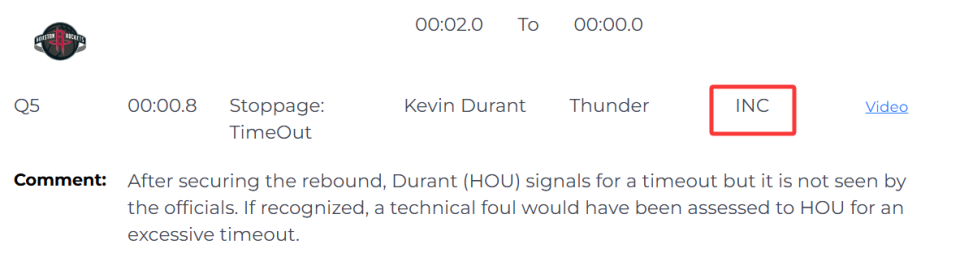 火箭vs雷霆裁判报告:漏吹杜兰特暂停技犯 阿门投篮被犯规也漏判