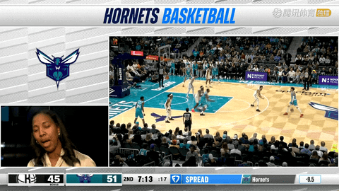随后,第2节还剩7分48秒时,萨朗接西恩-詹姆斯妙传,三分投篮命中,黄蜂将分差拉大到51-42。