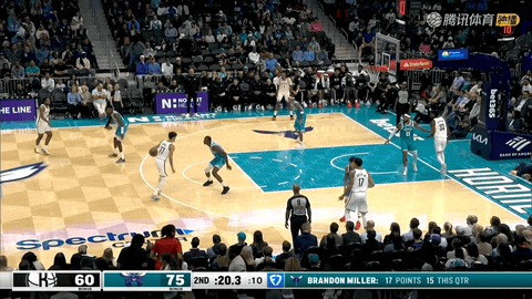 次节回来,第2节还剩11分39秒时,布里奇斯接米勒分球后三分投篮命中,黄蜂继续发力。