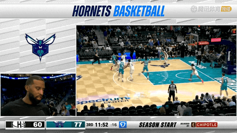 本节最后11秒,迪亚巴特跑动扣篮命中,黄蜂把半场比分定格在77-60。