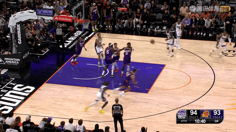 接着布克、伊戈达罗屡次杀入篮下得手,吉莱斯皮和布克又在外线火上加油;还剩4分39秒时,布克接奥尼尔回传三分再中,分差缩小到7分。