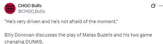 在谈到布泽利斯的表现时,多诺万说道:“他求胜欲极强,而且从不畏惧关键时刻。”在谈到武切维奇的表现时,多诺万说道:“他在职业态度上无可挑剔,把自己照顾得非常好,而他马上就要35岁了。”