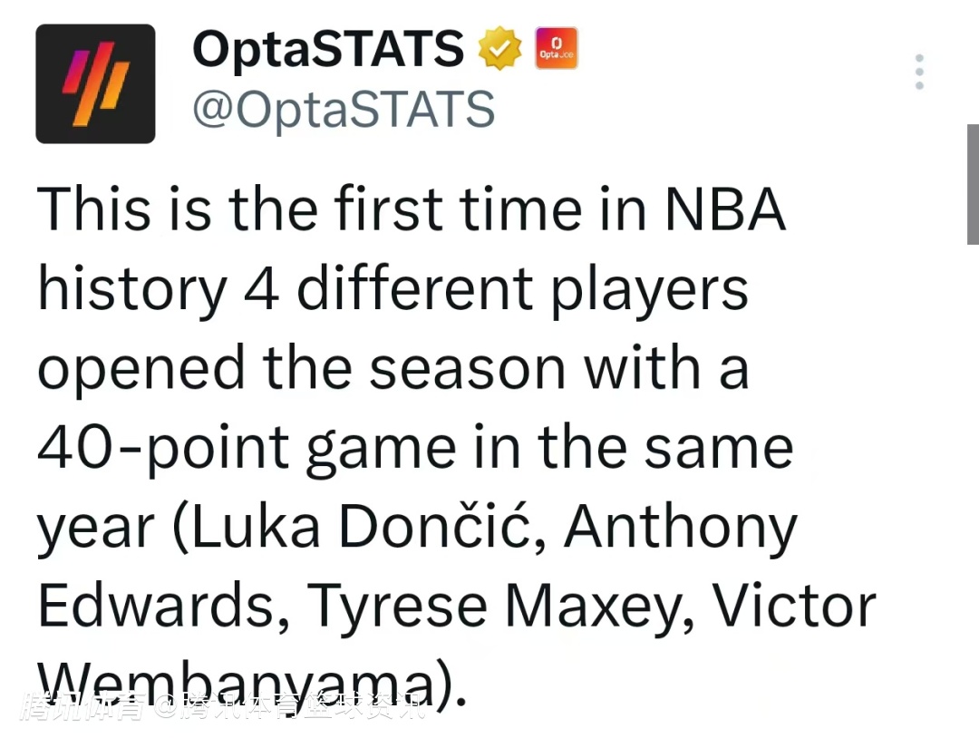 新赛季揭幕战创纪录!4名球员同砍40+历史首现 新一代球星爆发