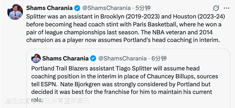 助教“升职”了!Shams:开拓者任命斯普利特为球队临时主帅