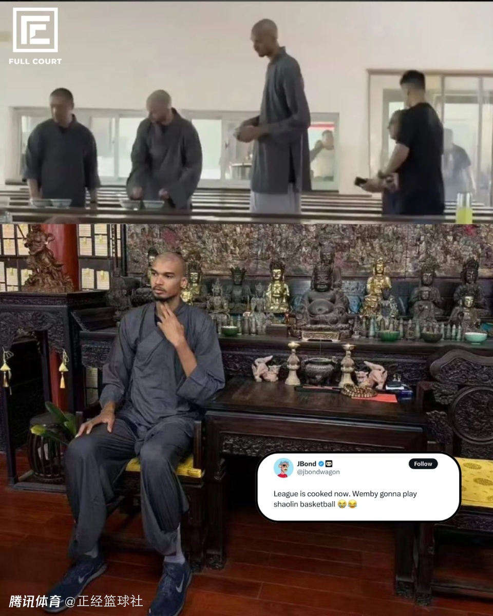众所周知,文班亚马今年休赛期曾经来到中国,并在少林寺进行了一段时间的特训。对此,美媒Hoops晒出文班亚马少林寺训练照调侃:这群少林僧侣创造了一个野兽!