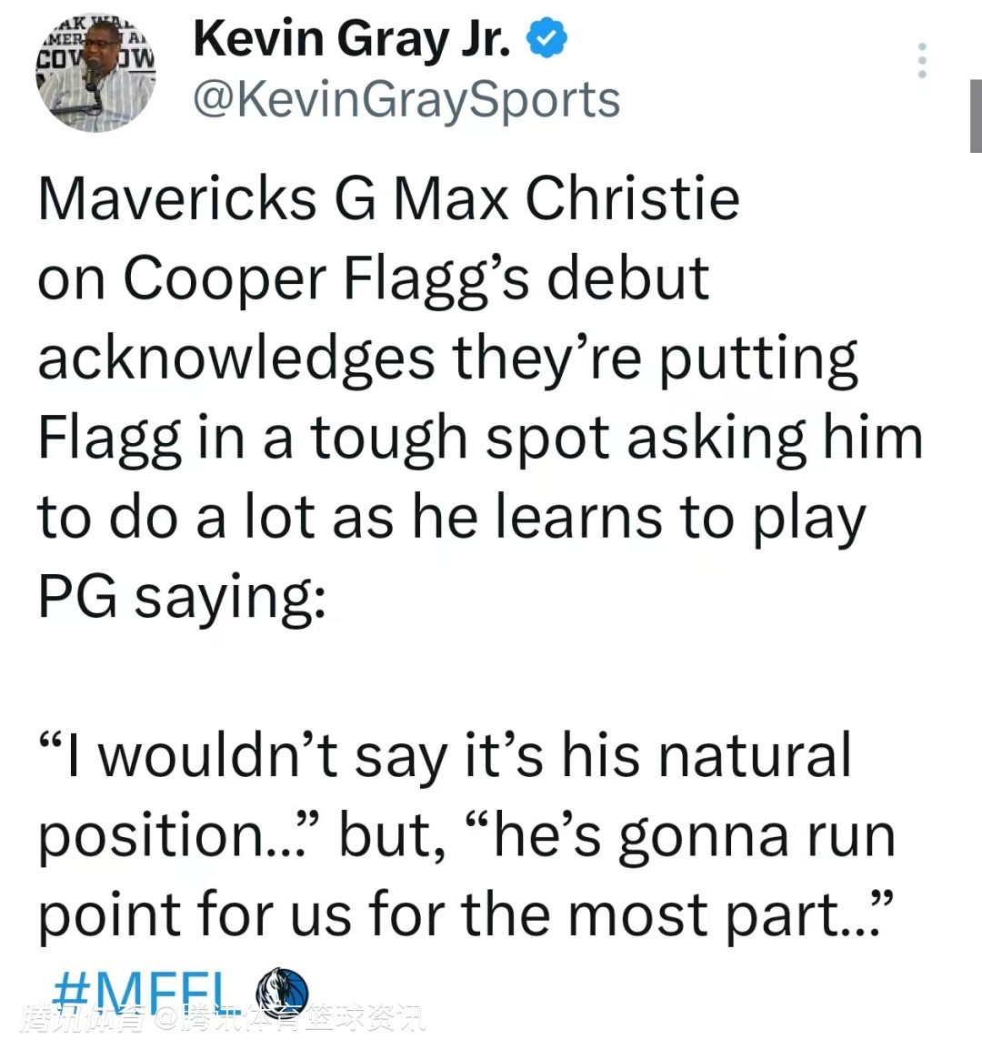 2025-10-24 08:20北京时间10月24日,独行侠后卫克里斯蒂在球队训练结束后接受媒体采访,谈及球队状元弗拉格的首秀表现。