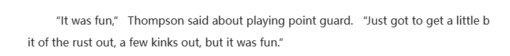 “打控卫的感觉很有趣,”阿门-汤普森谈及新角色时说,“只是还需要适应一下,解决些小问题,但整体来说很开心。”