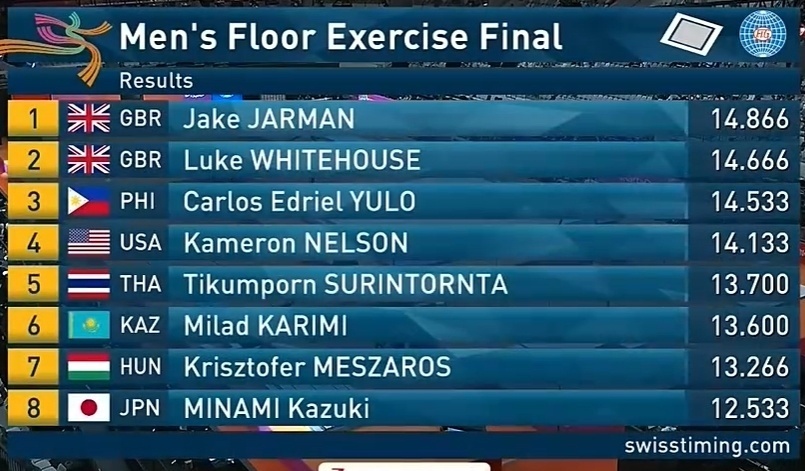 世锦赛男子自由操英国贾尔曼力压群雄,队友收获银牌!菲律宾名将摘铜