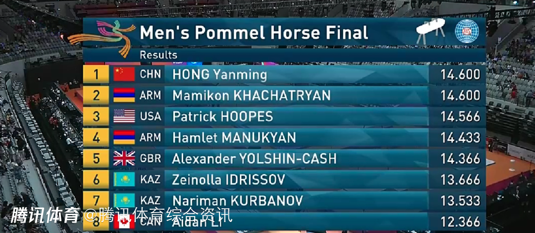 洪延明此前在体操世界杯多哈站以难度分5.8、完成分8.866、总分14.666分拿到了鞍马比赛银牌,而在5月的全国体操锦标赛,他则是以13.766分拿到了鞍马比赛的金牌。