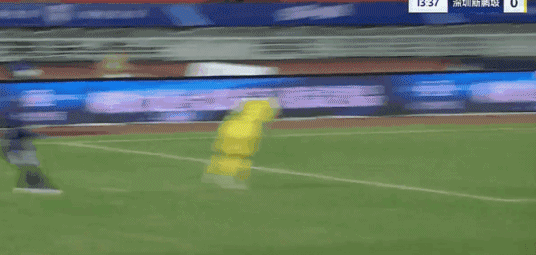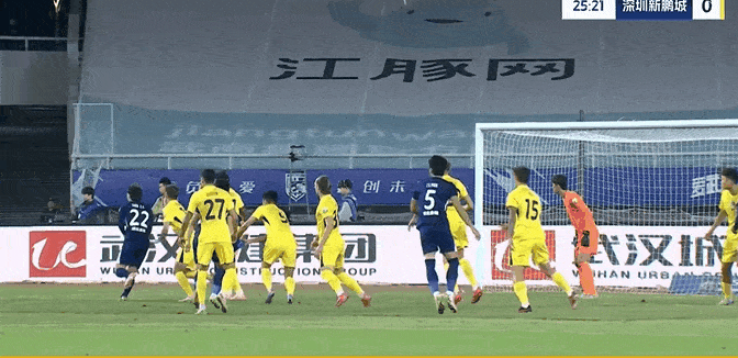 第38分钟,深圳右边路传中球到禁区前左侧,跟进的姜至鹏迎球劲射被郭嘉宇倒地没收。