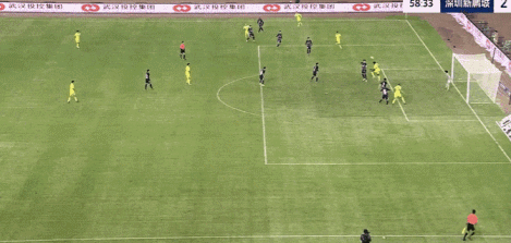 第71分钟,三镇传球到小禁区右侧,跟进的郑浩乾爆射击中边网。