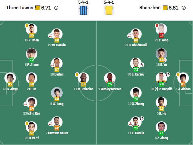 后卫:2-贺惯、5-朴志洙(F)、23-任航(46’29-郑浩乾)、28-王毅、15-陈哲超