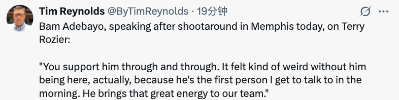 力挺队友!阿德巴约:我们会一直支持罗齐尔 他不在这感觉有点怪