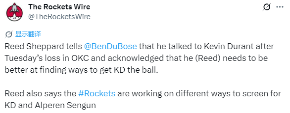 关于如何将球尽快传给杜兰特,谢泼德表示:“我觉得我得做得更好才行。你知道,那可是杜兰特啊!对手肯定会严防死守,不会轻易让他接到球。所以我和他聊过,我也跟他说了,我得做得更好,想办法把球传到他手里。但其实不只是我,作为一支球队,我们得找到其他办法,比如为他做掩护,还有申京也得帮他创造空位机会,总之就是让他能获得更好的出手机会,把他送到能充分发挥实力的位置上。”