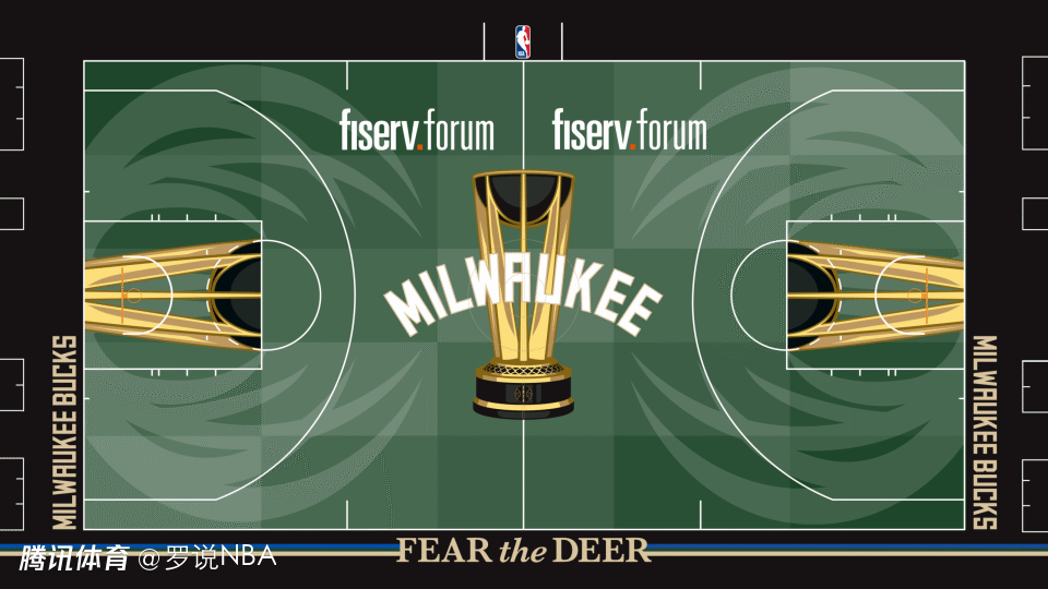 隐藏细节:在密尔沃基雄鹿队和洛杉矶湖人队主场的球场中场区域,奖杯底座图案上刻有两队各自夺得NBA杯的年份。