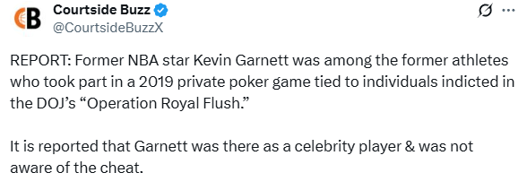 NBA涉赌丑闻后续!曝加内特参与非法牌局:对作弊不知情+提前离开