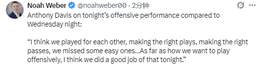 在谈到缺少正统控卫是否会带来挑战时,浓眉说道:“没有。我的意思是,就像我之前说的,我唯一注意到的变化是,对手会对我们采取全场紧逼防守,这对我们来说可能算是个新情况,而这差不多就是唯一的不同了。现在我们的进攻发起时间会比以往稍晚一些。”