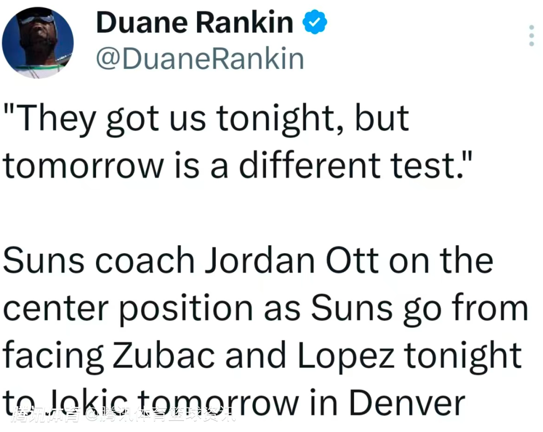 头疼!太阳主帅:今天我们刚对阵完祖巴茨和大洛 明天又要在丹佛面对约基奇