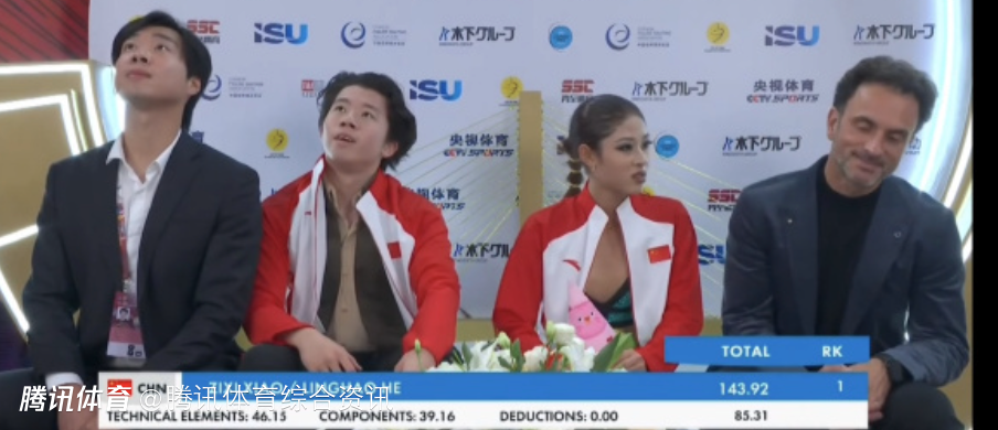 另外两对中国组合,肖紫兮/何凌昊获得85.31,总分143.92;任俊霏/邢珈宁获得93.43分,总分153.17。