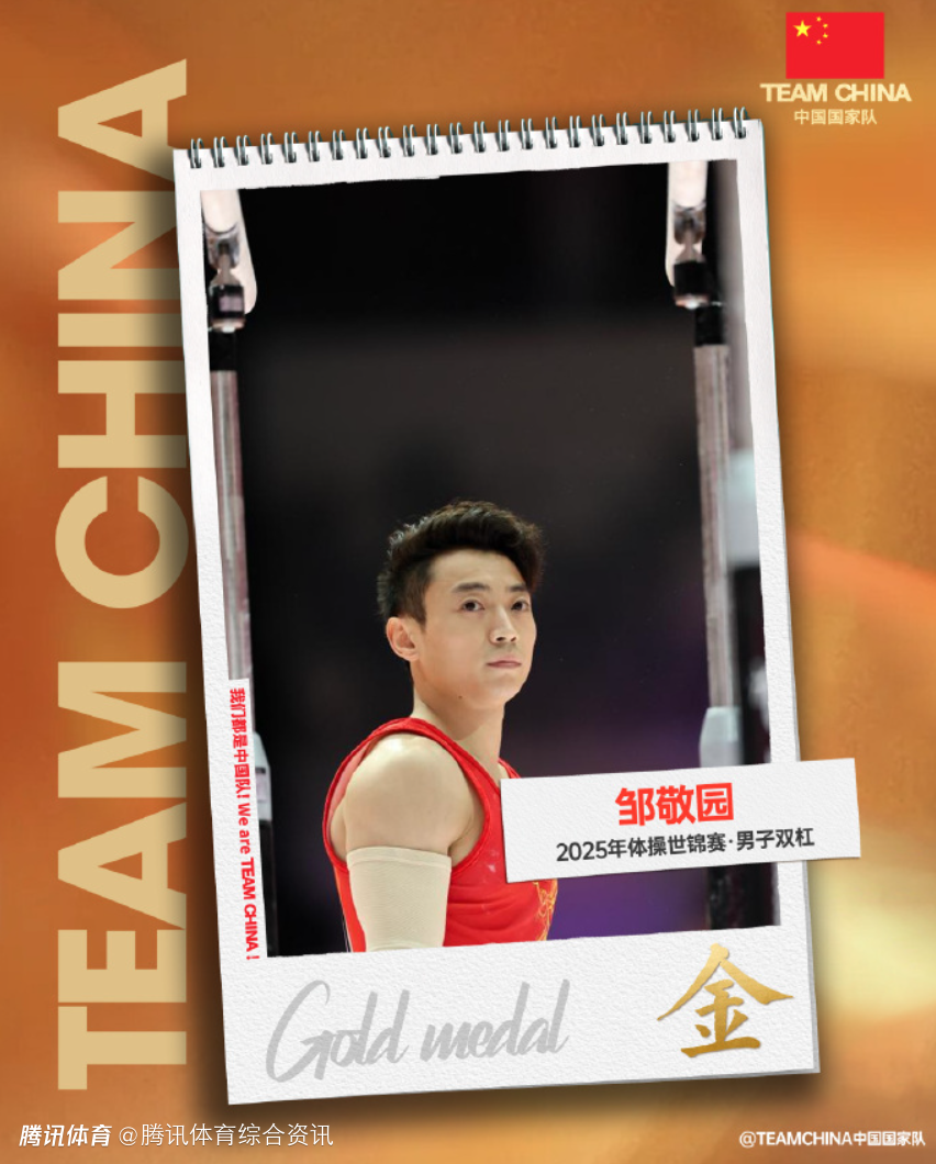 决赛中,邹敬园以15.300分(难度分6.000+完成分9.300分)拿到冠军。这是他继2017、2018和2022年后,第四次登顶世锦赛双杠项目,也成为陈一冰(吊环)之后,中国第二位在单项上四次夺冠的男子运动员。日本19岁新星角皆友晴和俄罗斯选手马里诺夫分获银铜牌,另外一位中国选手侍聪名列第八。