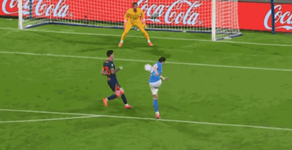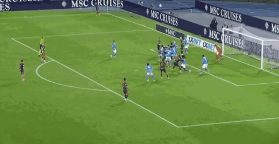 第66分钟,那不勒斯边线球掷出,安古伊萨接到队友摆渡后,一条龙破门得分,将全场比分定格为了3-1。