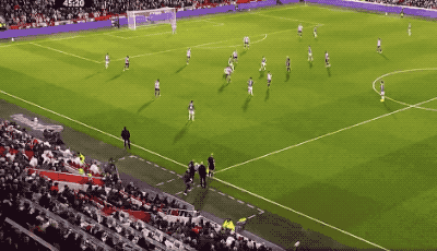第27分钟,接到琼斯的传球,科尔克兹突入禁区,没有选择横传,而是直接射门,队友摊手表达不满。