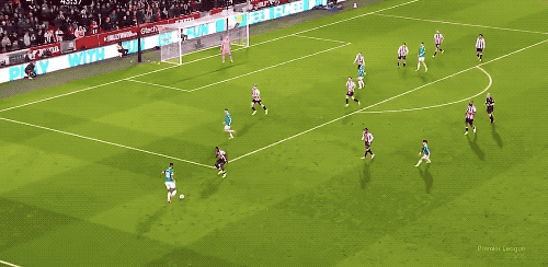 第45分钟,利物浦前场传球被抢断,布伦特福德打出快速反击,达姆斯高的传球打穿利物浦的防线,沙德打进单刀。
