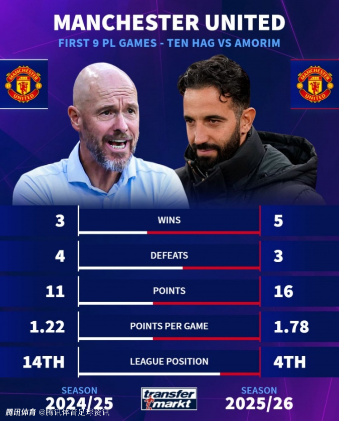 值得一提的是,当曼联在前6轮取得2胜1平3负仅拿7分时,阿莫林也遭遇了下课危机,毕竟7分也是追平了曼联队史的最差开局。随后曼联重整旗鼓取得了一波3连胜,这其中还战胜了卫冕冠军利物浦。