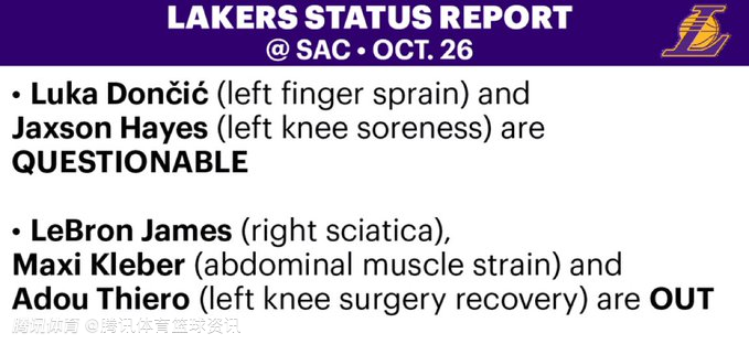 2025-10-26 08:20北京时间10月26日,湖人官方更新球队伤情报告,东契奇因左手手指扭伤出战成疑。