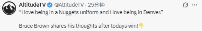 布朗说道:“这种感觉真的很棒。我回到了熟悉的主场,能穿上掘金的队服打球太开心了。目前大家的防守还在逐步提升,这套新防守体系,大家过去几年其实一直在打,只是现在还需要一些细节上的调整。”