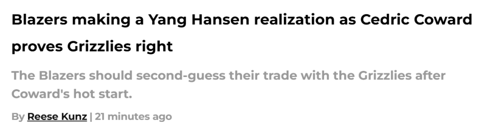 2025-10-26 14:50北京时间10月26日,灰熊11号秀考沃德的爆发,让波特兰的一些媒体讨论起杨瀚森来。毕竟,考沃德正是开拓者换来杨瀚森那笔交易的筹码。开拓者队记Reese Kunz点评如下——