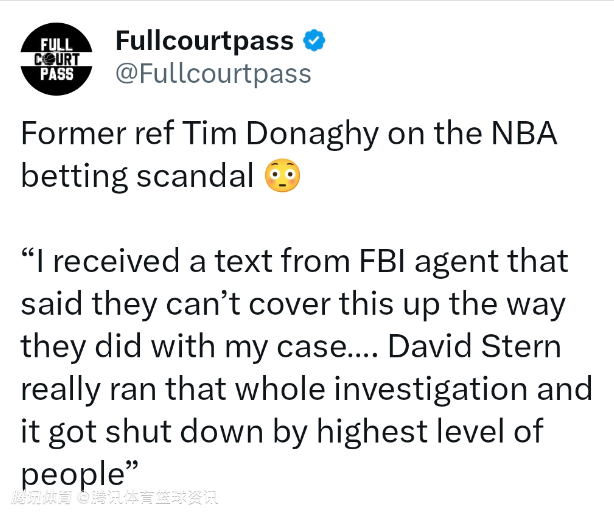 前NBA裁判多纳吉:我收到FBI探员短信 称当前赌博丑闻无法像我当年那样被掩盖