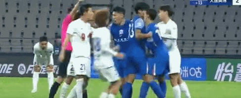 值得一提的是,已经被换下场的朱鹏宇也冲入了球场,尽管被边裁拉开,但还是因为冲入球场而得到第二张黄牌,被红牌罚下。