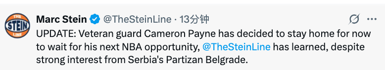 2025-10-27 00:50北京时间10月27日,据名记Stein报道,尽管贝尔格莱德游击队对卡梅隆-佩恩兴趣浓厚,但他还是决定暂时留在美国,等待重返NBA机会。