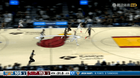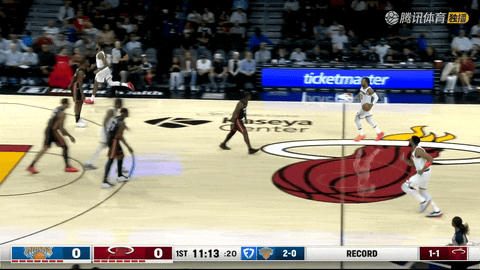 半场结束,尼克斯54-57落后热火。