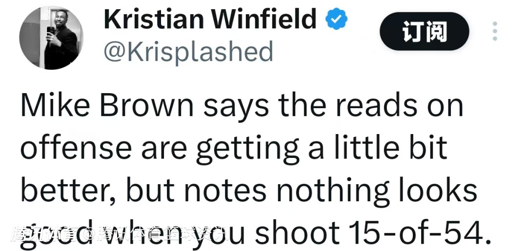 迈克-布朗还提到,球队在进攻端的判断有所好转,但他强调,当投篮命中率仅为54投15中时,一切表现都无从谈起。“我们的进攻能打得更好吗?当然能。但如果让对手拿到31分快攻得分,还让他们获得31次罚球机会,要在一支强队的主场赢球,难度太大了。”