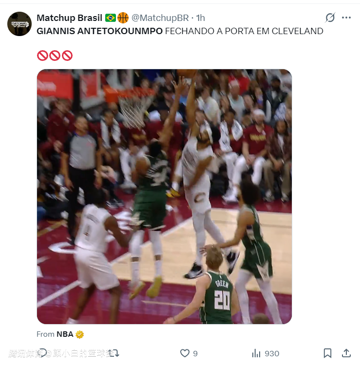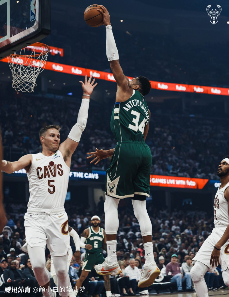这支雄鹿队阵容孱弱,延伸条款裁掉利拉德后就是扬尼斯单核带队,攻防两端都需要靠扬尼斯一人支撑,字母哥除了要包揽球队大部分的得分之外,内外线的防守也要一把抓,先到内线封盖阿伦,随后扑到外线去延误米切尔,字母哥打得很累。