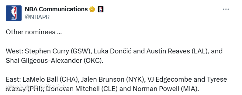 西部:库里、东契奇、里夫斯、亚历山大