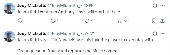 基德透露,莱夫利、加福德、欧文、埃克萨姆和布兰登-威廉姆斯今天将缺席比赛,安东尼-戴维斯将以五号位(中锋)身份首发出战。