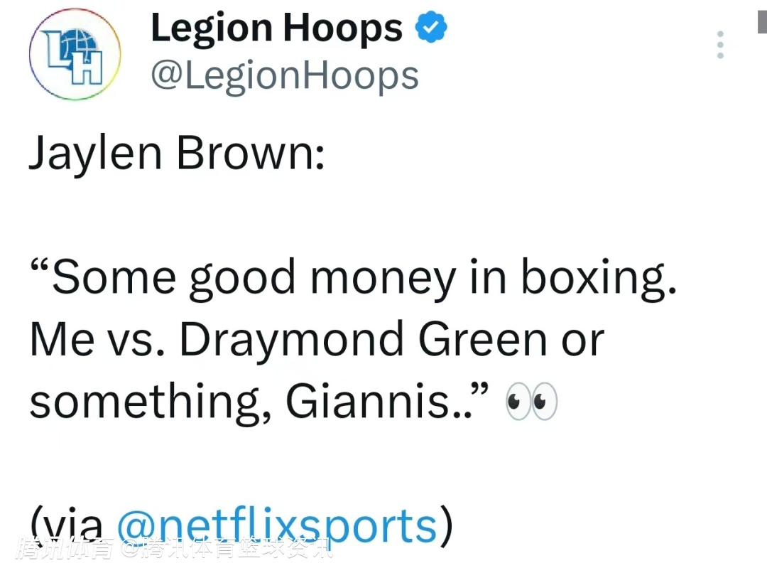 约架赚钱?杰伦-布朗:我和追梦字母打一场拳击赛能有不菲收入
