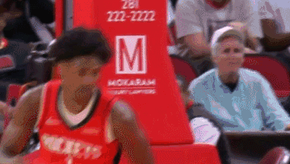阿门持球变向突破暴扣。