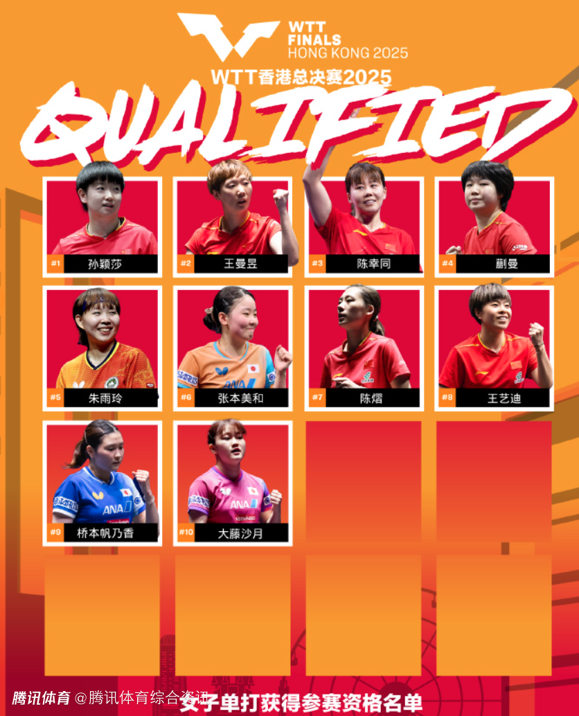 女单:孙颖莎、王曼昱、陈幸同、蒯曼、朱雨玲、张本美和、陈熠、王艺迪、桥本帆乃香、大藤沙月