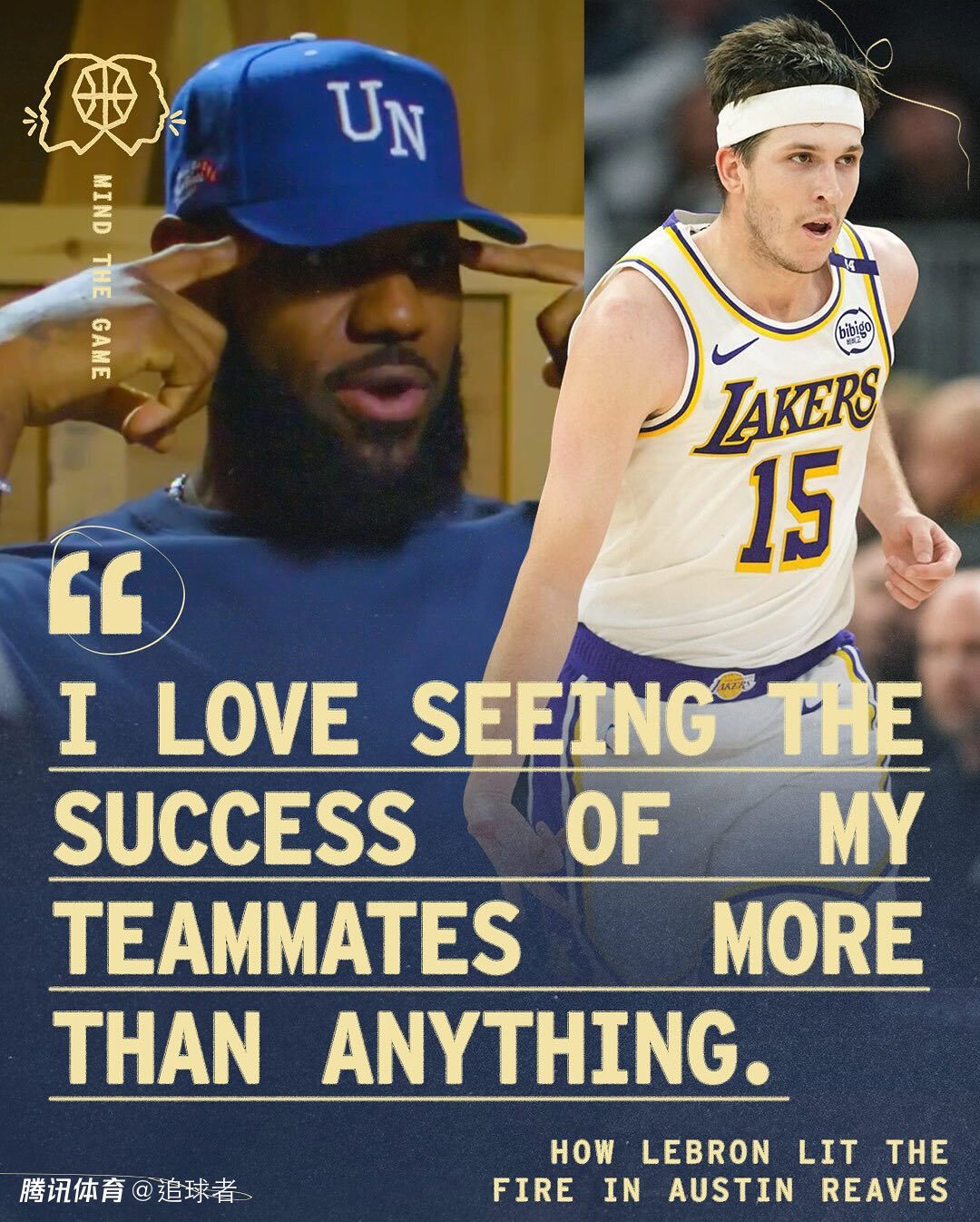 今日詹姆斯更新Ins动态晒出自己在《球场大脑》中谈到队友的一段话;詹姆斯在节目中表示:“看到队友们的成功比任何事情都更让我开心,我们之前对阵孟菲斯的系列赛就是最好证明,那个系列赛不仅让我赢得里夫斯的信任,也让我坚信他能掌控局面。记得大概是第二或第三场(对方有主场优势),第四节关键时刻我就想着‘AR(里夫斯),去帮我们拿下胜利’。”