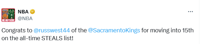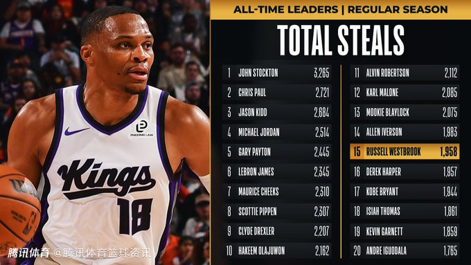 2025-10-29 10:10北京时间10月29日,NBA常规赛继续进行,国王队对阵雷霆队。前三节战罢,威斯布鲁克已完成1次抢断,让自己的生涯总抢断数达到1958次,超越德里克-哈珀,升至NBA历史抢断榜第15位。随后NBA官方推特也发文,恭喜威斯布鲁克完成里程碑。
