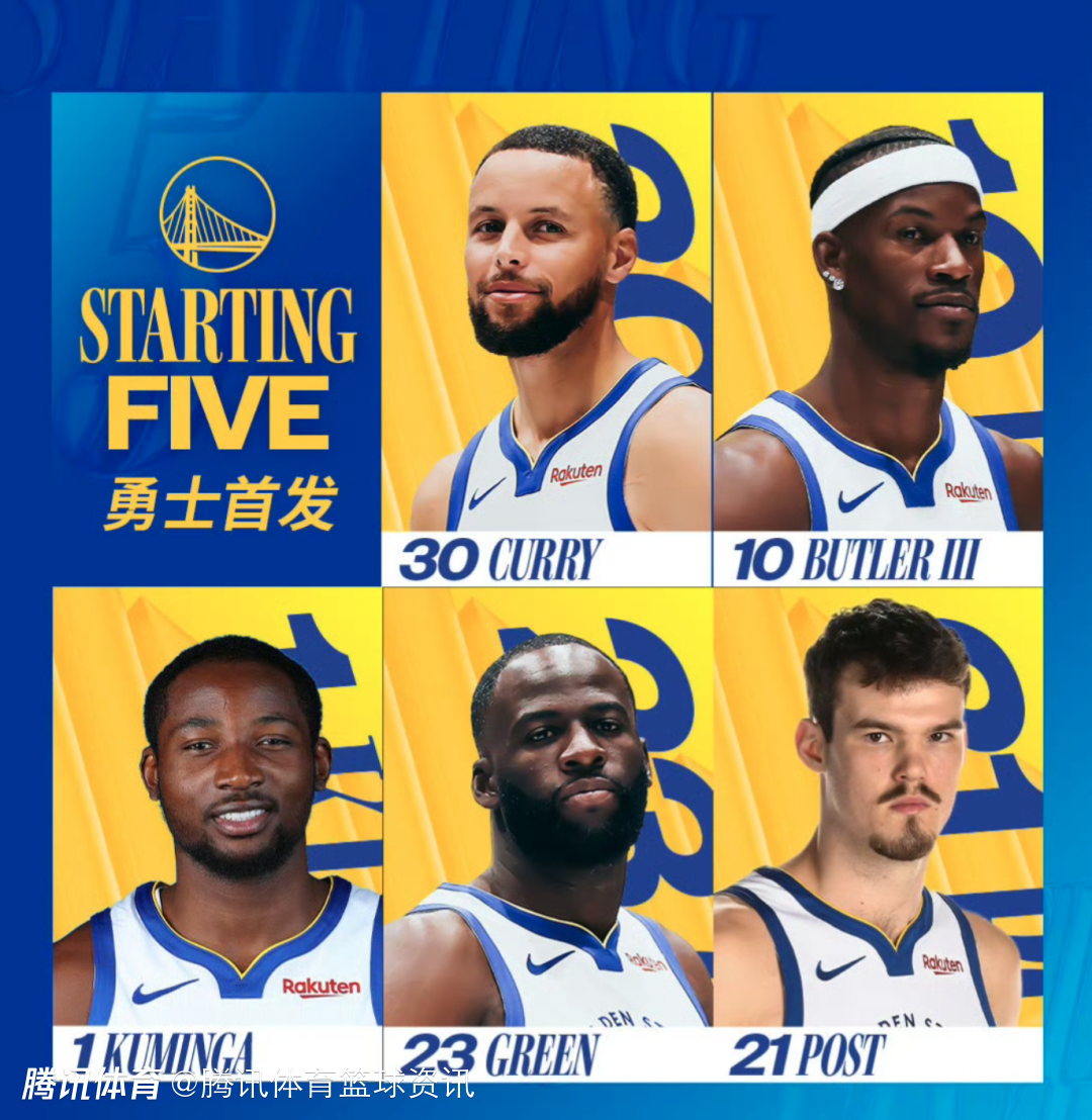 勇士首发如下:库明加、追梦、波斯特、巴特勒、库里。首发五虎和此前球队20分不敌开拓者的比赛相同,相较于上场对阵灰熊的比赛首发阵容,科尔将波杰姆斯基替下,让波斯特进入首发。