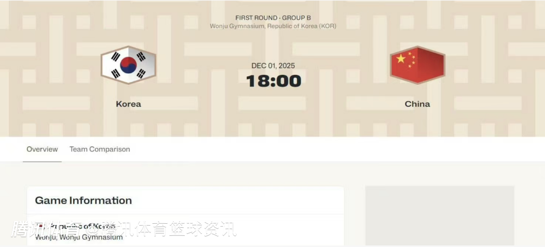 2025年11月28日19:30:中国vs韩国(北京,五棵松体育馆)