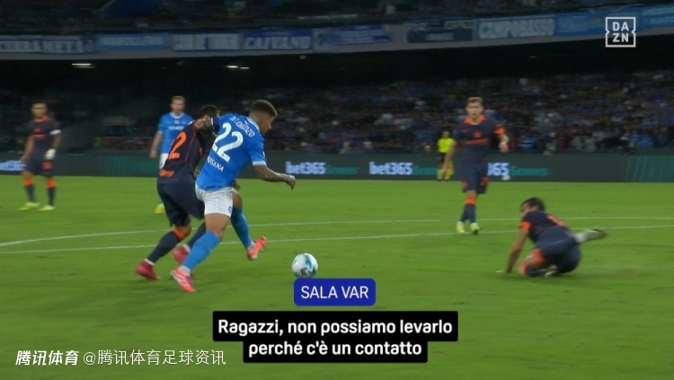 在迪洛伦佐倒地后,VAR表示:“我们这边认为没有问题,但还是核实一下。”