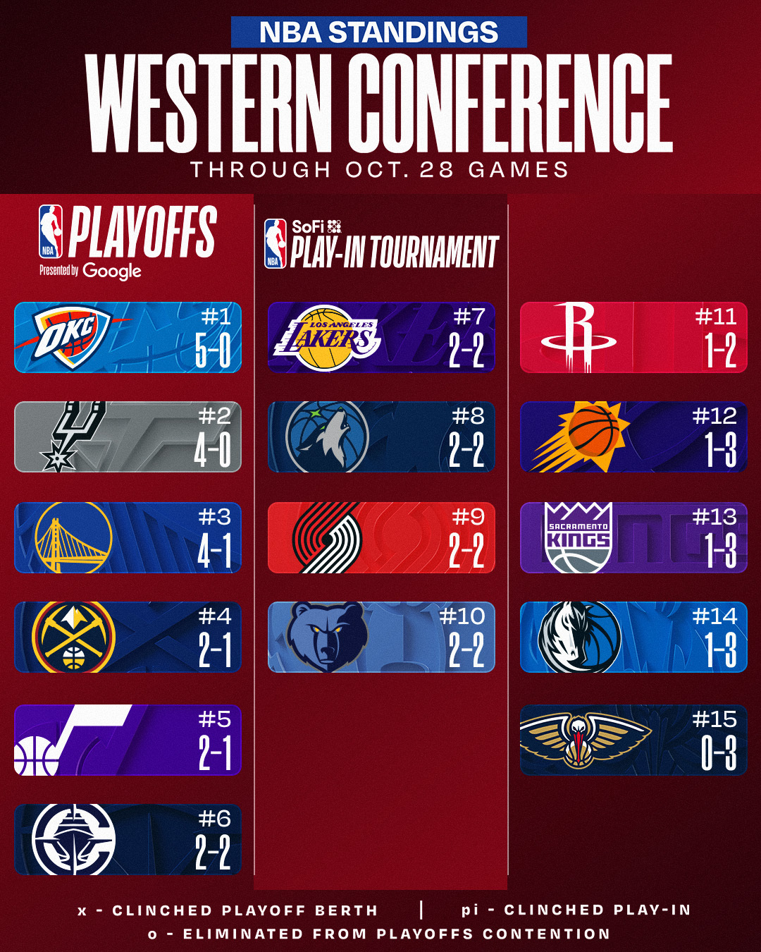 - NBA最新排名:76人、雷霆保持不败领跑东西部 联盟3队尚未赢球2025-10-29 18:00:03