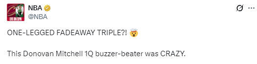 从慢动作回放来看,在米切尔接球时,他的身边总计有3名凯尔特人球员,其中2人上前试图封盖米切尔。但米切尔却用假动作骗过了对手,然后压哨三分球投中。