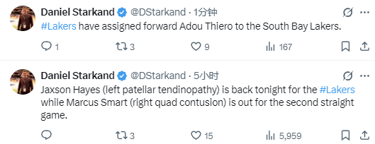 除此之外,湖人队还宣布,海耶斯则将连续第二场比赛缺席。